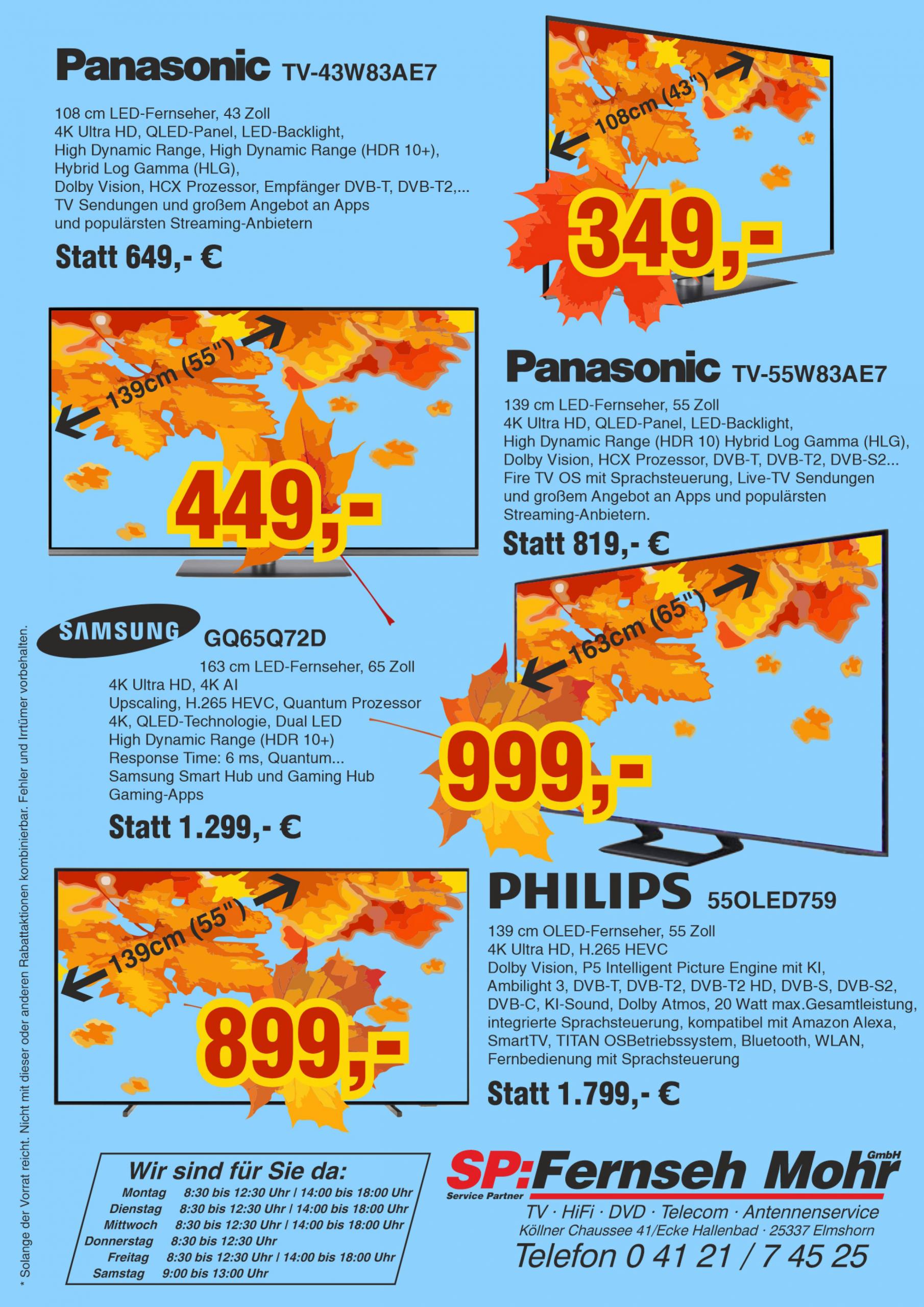• Postanschrift: Fernseh Mohr GmbH, Köllner Chaussee 41, 25337 Elmshorn